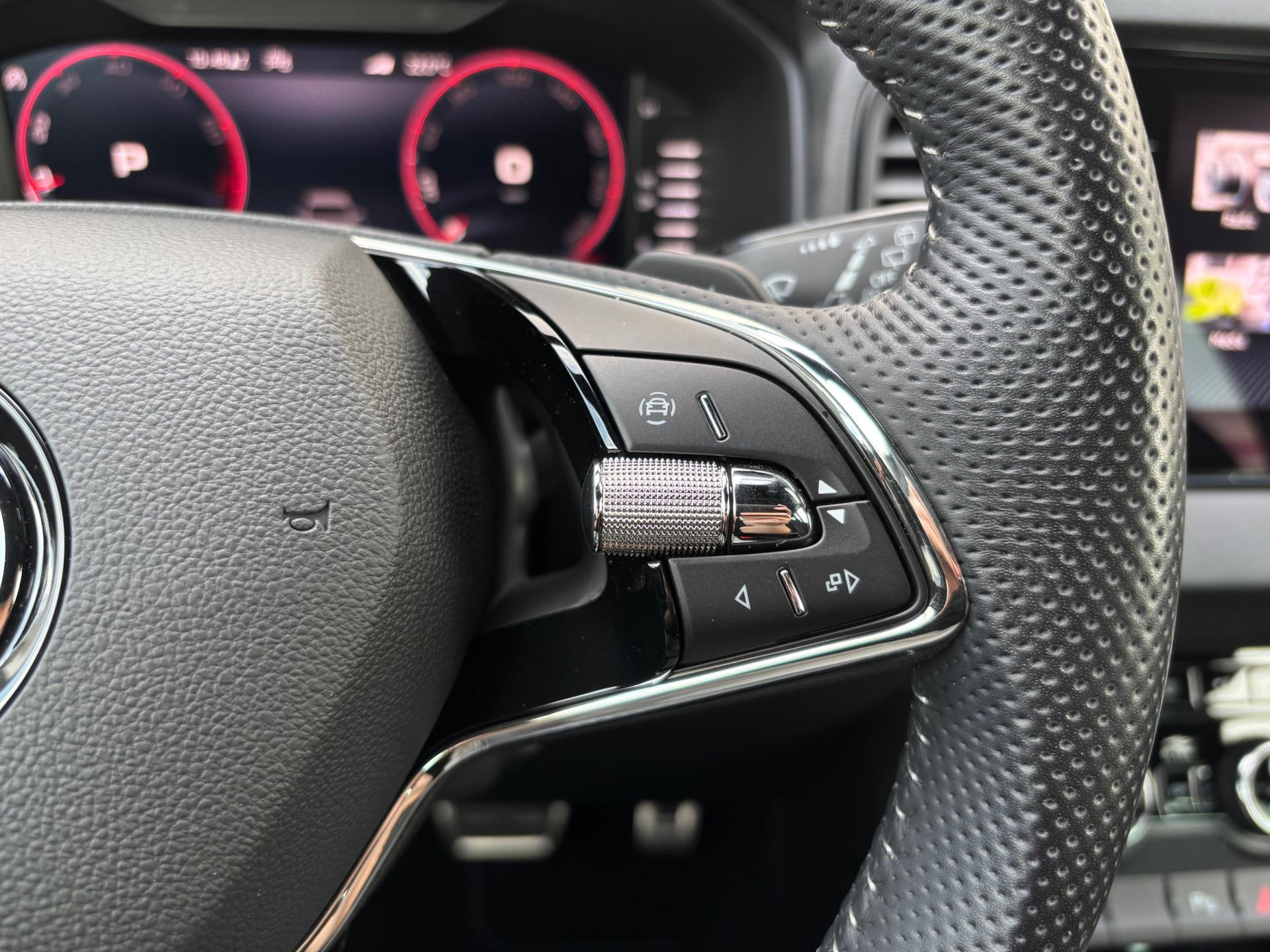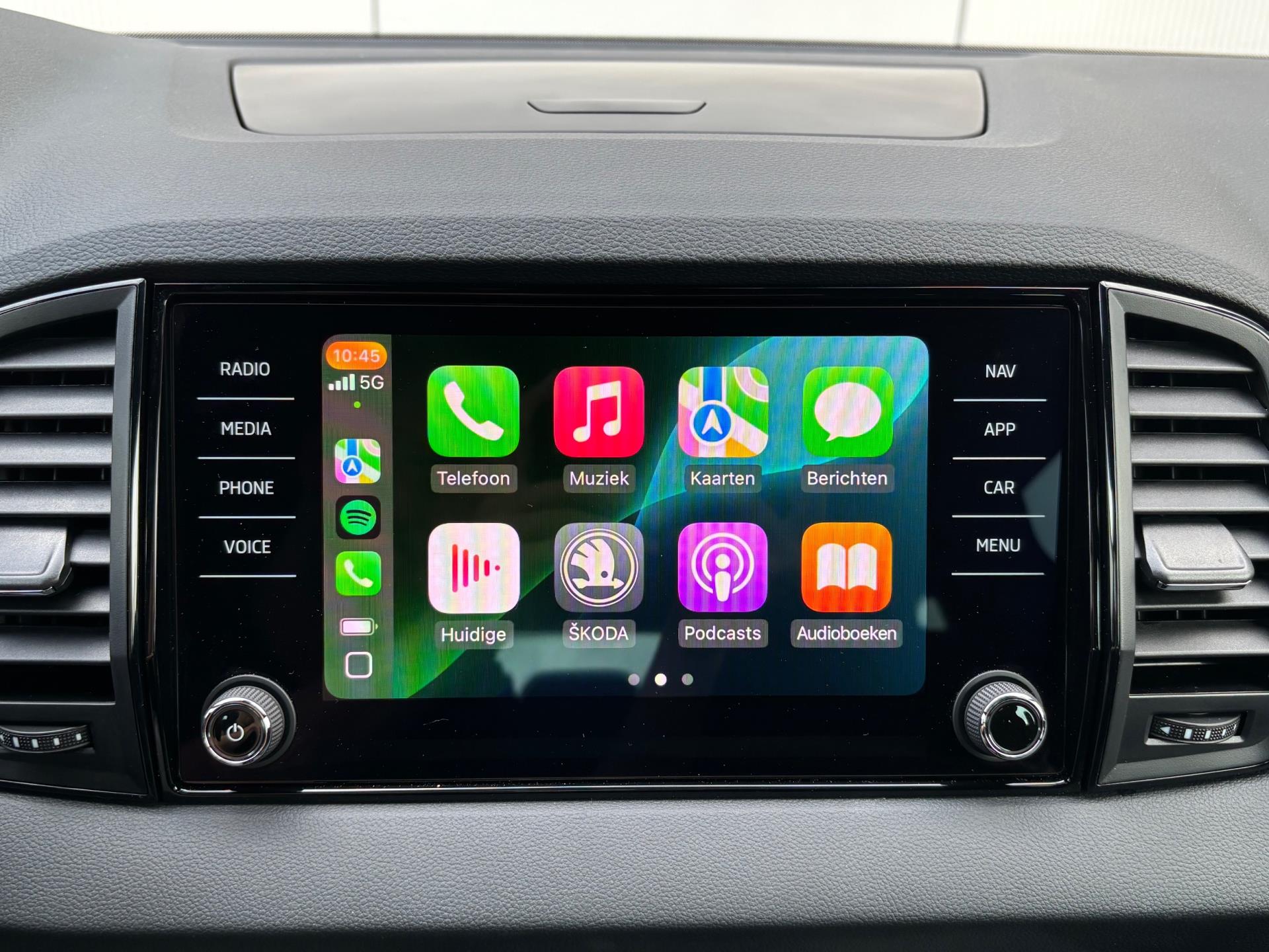 Zeer nette en complete Skoda Karoq met 1.5 liter benzinemotor met 150 pk, gekoppeld aan een 7-traps volautomaat. In de sportieve Sportline uitvoering is deze auto o.a. voorzien van achteruitrijcamera, adaptieve cruise control met stop & go, touchscreen navigatiesysteem, ondersteuning van Apple Carplay en Android Auto, carbonafwerking in interieur, DAB+ radio, dakrails, digitale cockpit, draadloze telefoonlader, hill-hold functie, keyless entry & start, lichtmetalen velgen 18 inch, parkeersensoren voor + achter, sportstoelen, sportstuur, stoelverwarming, en stuurverwarming.