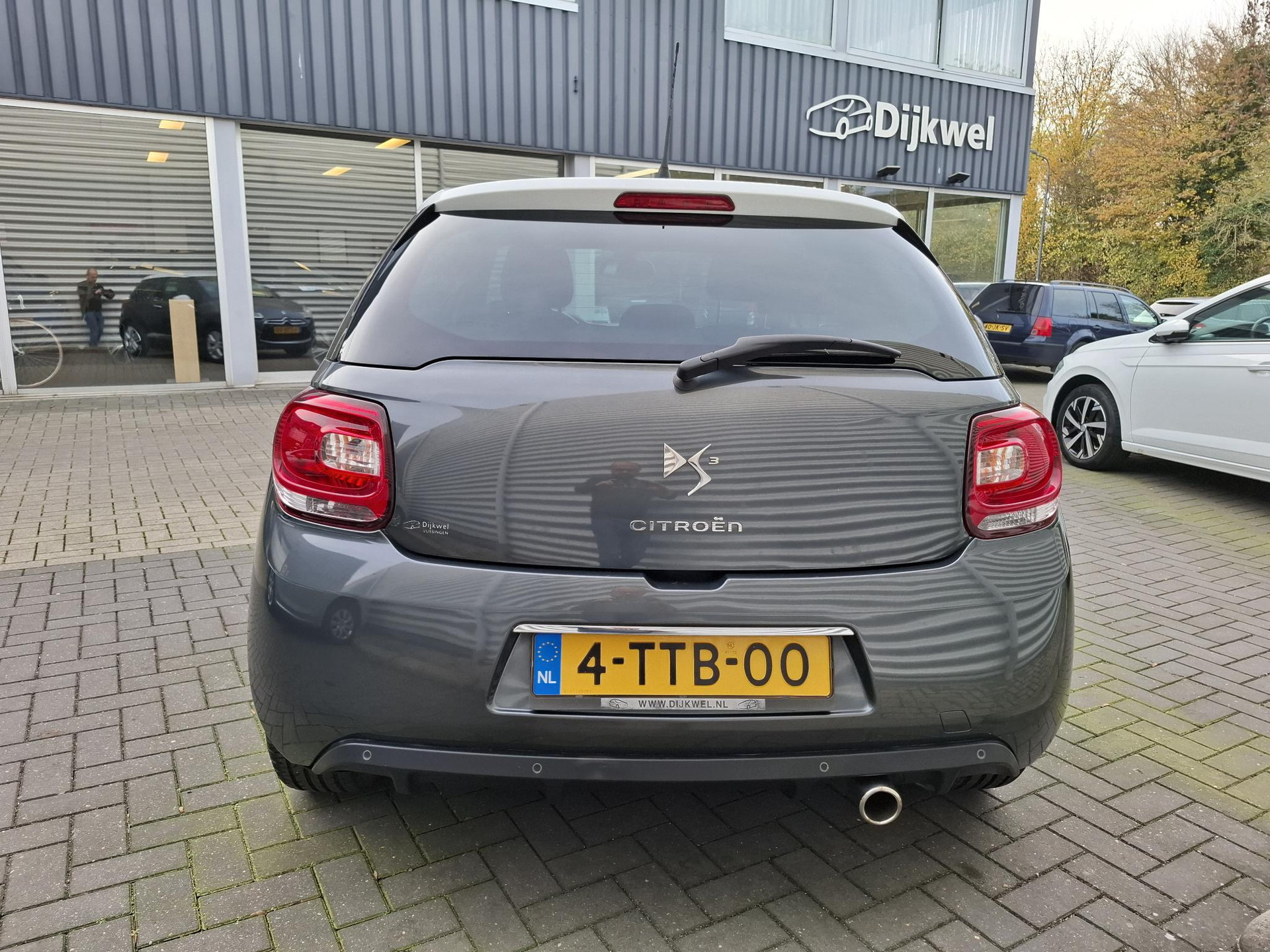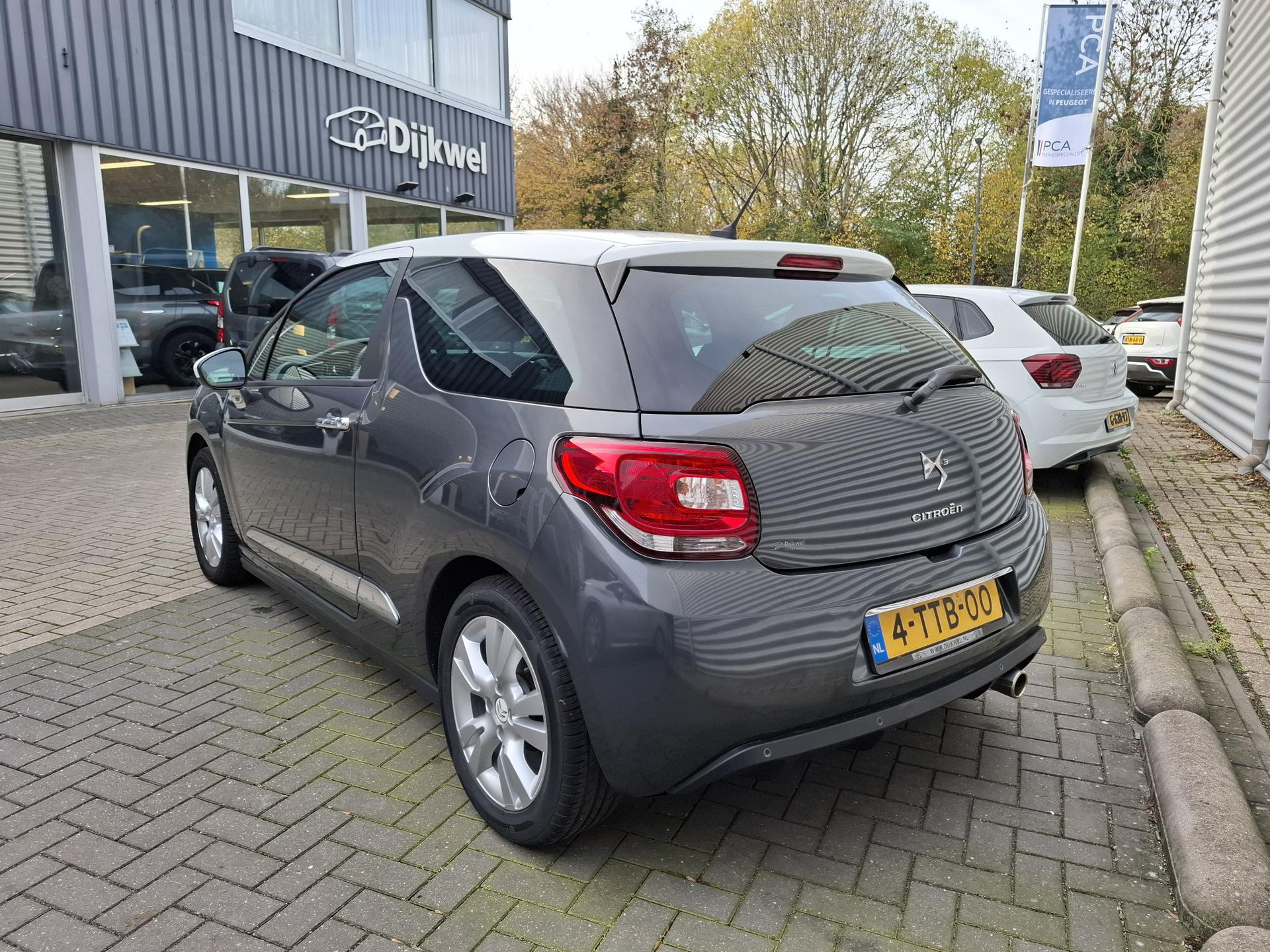 Zeer mooie sportieve DS3 1.2 VTi So Chic in Gris Shark met wit dak met lage km.stand, van 1e eigenaar en nieuw door ons geleverd en onderhouden (recent nieuwe distributieriem)! Deze complete DS3 is voorzien van o.a: Climate-control (airco), cruise-control, armsteun, extra getinte achterruiten), 16 lichtmetalen velgen, LED verlichting etc. De verkoopprijs is compleet rijklaar inclusief Bovag-garantie, Nationale Autopas, onderhoudsbeurt, APK, multi-point kwaliteitscontrole.