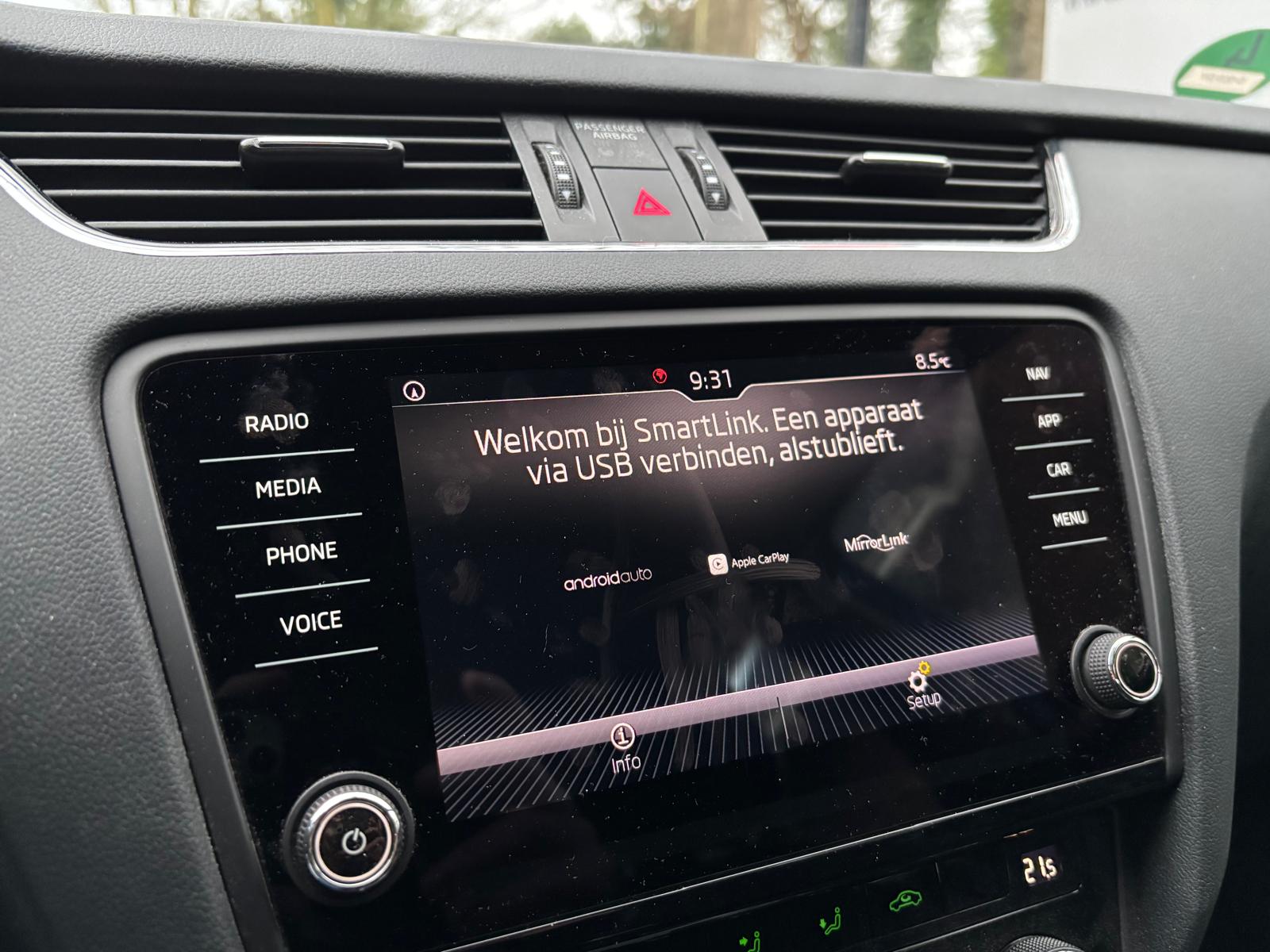 Het digitale dashboard geeft een nauwkeurig en makkelijk overzicht van alle belangrijke functies. Adaptive cruise control houdt de ingestelde snelheid vast en houdt automatisch afstand tot uw voorligger. Als u regelmatig met een aanhanger of een fietsendrager op pad bent, is de afneembare trekhaak een praktische extra. Deze ŠKODA is voorzien van spraakbediening voor het navigatiesysteem met harde schijf en voor het audio-installatiesysteem. Maar u kunt ook de knoppen op het stuur gebruiken. Met de draadloze telefoonlader laadt uw smartphone automatisch op tijdens het rijden. Natuurlijk behoren WIFI-hotspot, automatische airconditioning, parkeersensoren achter, regensensor, dvd-systeem en automatisch dimmende buitenspiegels ook tot de uitrusting van deze complete auto.