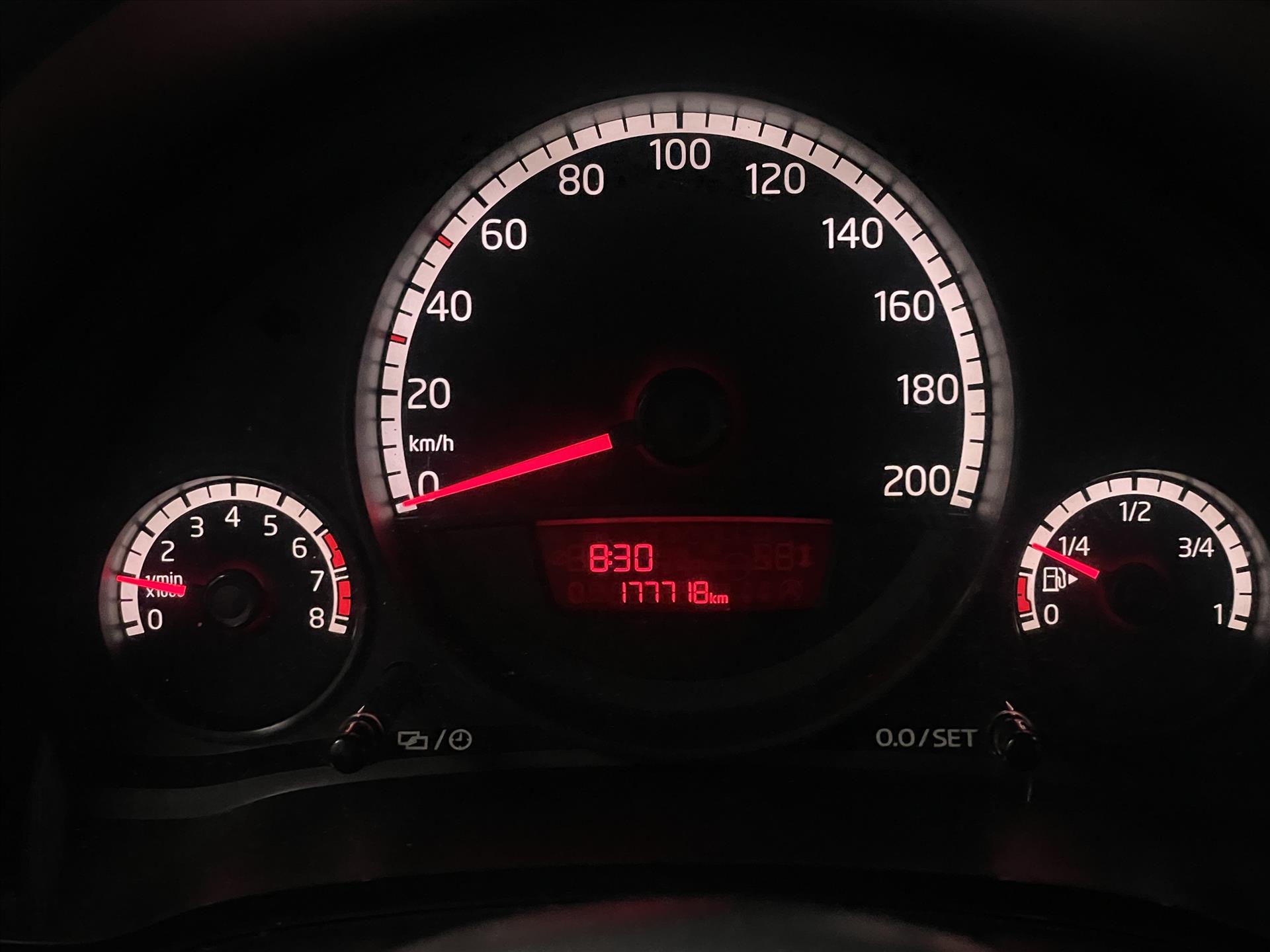 Instrumentenpaneel bestaande uit snelheidsmeter, kilometerteller, dagteller, toerenteller, klokje en brandstofmeter