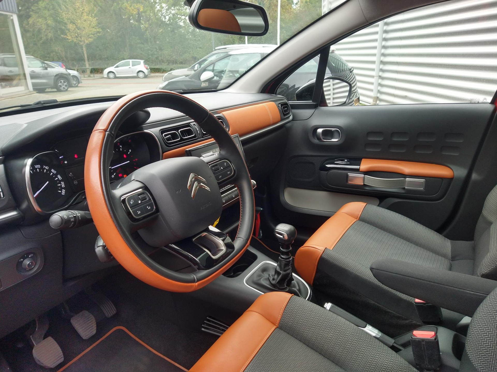 Fraaie dealeronderhouden Citroën C3 1.2 110 pk Shine in Orange Power met glazen panorama dak. In luxe Shine uitvoering voorzien van o.a: Glazen panoramadak, half lederen bekleding, fabrieksnavigatie, Bluetooth, Apple Carplay, Android Auto, climate-control, cruise-control, armsteun, 17 lichtmetalen velgen, parkeersensoren en achteruitrijcamera etc. etc. De verkoopprijs is compleet rijklaar inclusief afleveringsbeurt, nieuwe APK en multi-point kwaliteitscontrole.